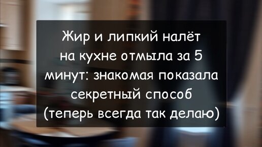 Жир и липкий налёт на кухне отмыла за 5 минут: знакомая показала секретный способ (теперь всегда так делаю)