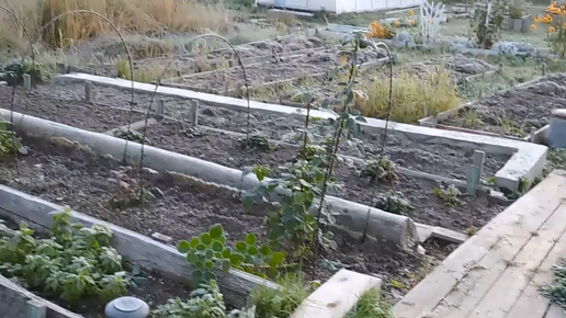 Первый заморозок. Подняли половые лаги. Подвязала плодовые деревья