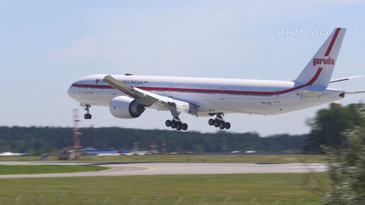 Боинг 777 президента Индонезии PK-GIG мягко посадил при порывистом ветре