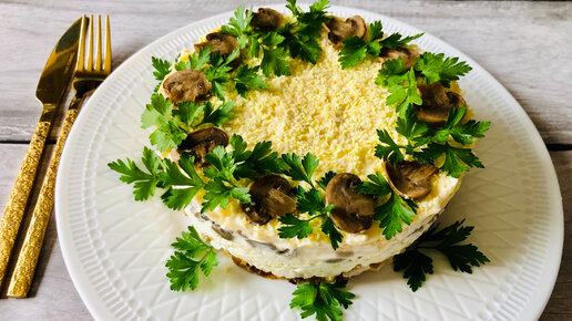 САЛАТ который ешь и не можешь остановиться.Слоеный салат с курицей и грибами.