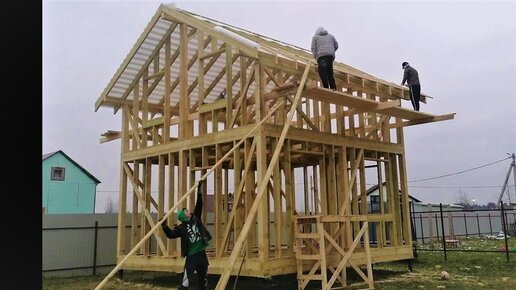 Строим Каркасный Дом 6х6 своими руками. Монтаж всей Кровли за 3 минуты