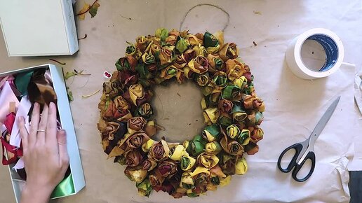 Как сделать осенний венок из листьев. Делаем розы из листьев клена, пошаговый урок осенней поделки.