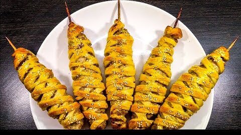 Сочное мясо, хрустящее тесто, и всё это на деревянной шпажке. Просто и вкусно