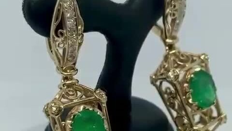 Серьги "Фонарики". Золото, изумруды и бриллианты. Ручная работа.