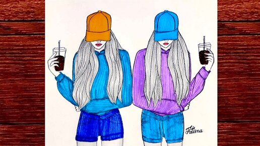 Как нарисовать лучших друзей | Рисунок лучших подруг | Простой рисунок