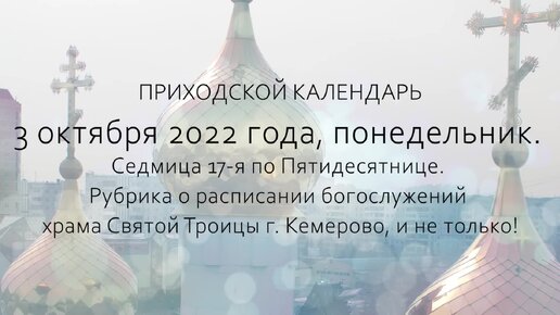 ЖИВОЙ КАЛЕНДАРЬ. 3 октября 2022 года, понедельник. Седмица 17-я по Пятидесятнице.