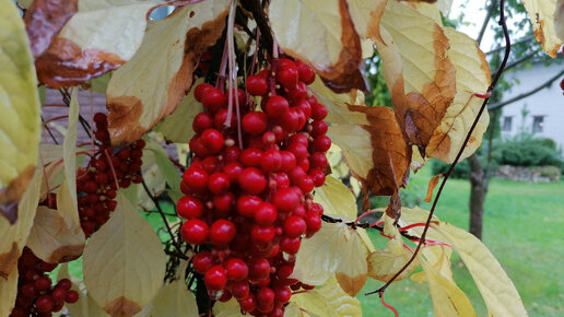 Лимонник китайский (Schisándra chinénsis) - ягоды краснеют, листва желтеет. Осень 2022