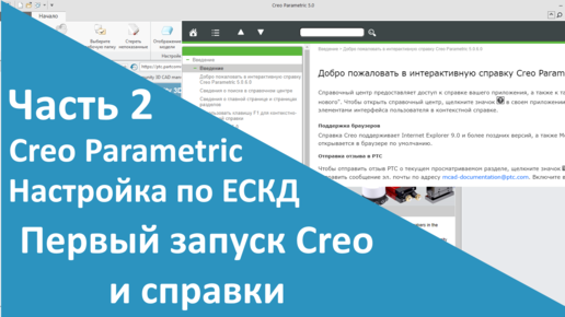 🛠PTC Creo. Настройка работы по ЕСКД. Часть 2. Первый запуск Creo и Справки.
