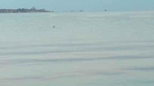Дельфин малыш гонял рыбу возле причалов на набережной в Керчи.
