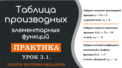 Таблица производных элементарных функций. Практическое занятие. Урок 3.1
