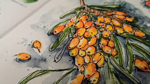 РИСУЕМ ВЕТОЧКУ Облепихи. Солнечный скетч для настроения