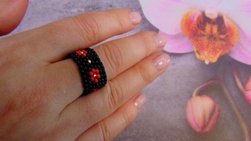 Кольцо из бисера \ Техника мозаичное плетение