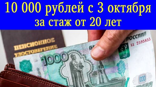 Выплаты 10 000 рублей Пенсионерам уже с 3 октября за стаж от 20 лет