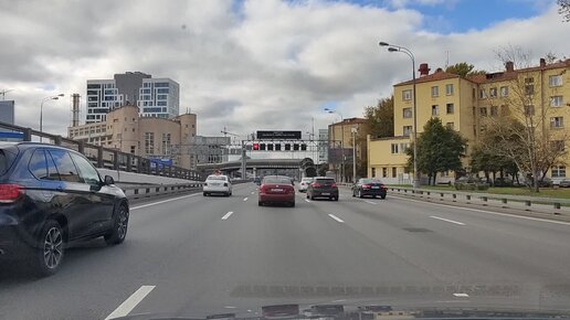 Поездка по третьему кольцу в Москве. Автомобильное движение в выходные. Погода в Москве в начале октября 2022 года
