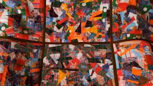 Супер большой нарядный ковер из лоскутов в технике Пицца.