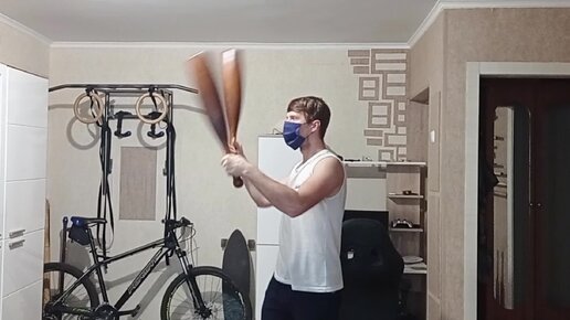 Сложнокоординационное упражнение с лëгкими булавами 2 по 1.5 кг.