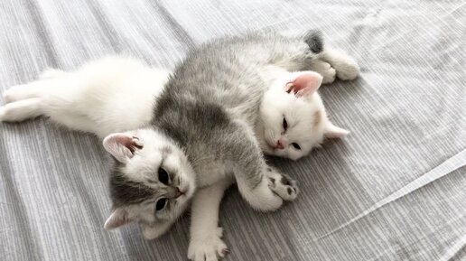 Котята брат и сестра спят. Персей и Кнопочка укладываются спать.