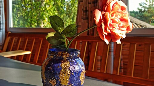 Стеклянную банку превратила в шикарную вазу, а потребовалось для этого только шпаклевка и поталь.