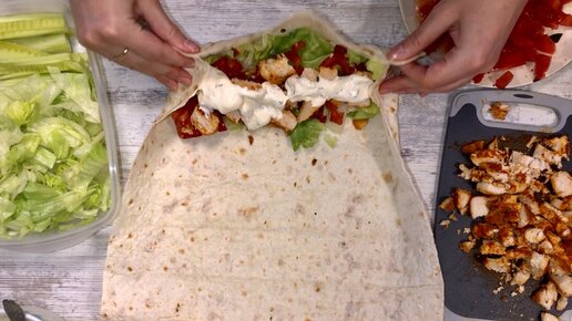"Куриная шаурма на ужин? Легко!" с чесночным соусом и айсбергом