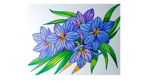 🌈🎨☀️ Осенние крокусы.🍁🍂🍁 Рисунок маркерами и цветными карандашами.