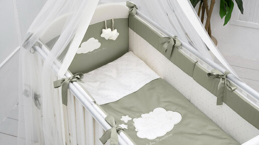 Комплект в кроватку из сатина Бамбино олива. Детское постельное белье Perina.