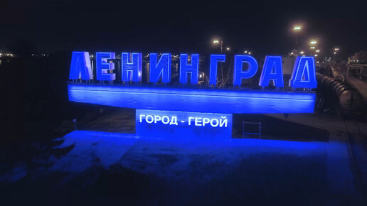 Подсветка стелы, встречающей корабли в порту Петербурга