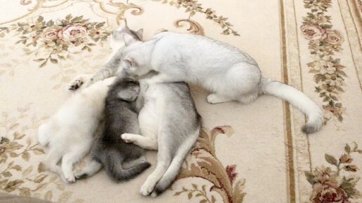 Картина маслом 😹 Кошка Кайли кормит молочком свою взрослую приёмную дочь Кристалл и подросших котят Персея и Кнопочку.