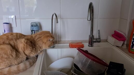 Посуду мыть не буду! Всё равно покормит) смешной котенок Персик коты приколы