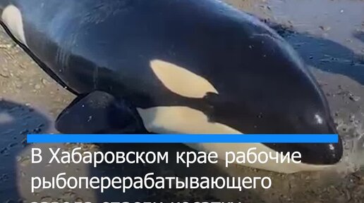 Рабочие спасли от гибели косатку, выброшенную на берег Охотского моря