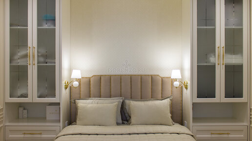 Шкафы по бокам от изголовья кровати