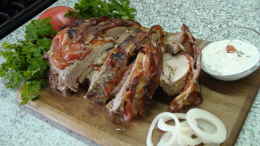 Приготовил 1,5 килограмма свинной шеи. Съели тут же!!! Мясо в духовке.