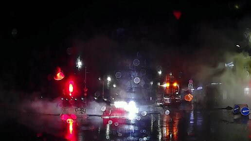 Дождь, вечер, дорожники с асфальтом