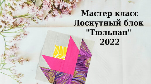 Patchwork блок "Цветок ТЮЛЬПАН". Мастер класс, лоскутное шитье для начинающих.