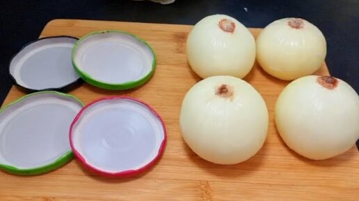 Беру лук и крышку. Знакомая из Китая научила,удивила всех. Век живи-век учись.