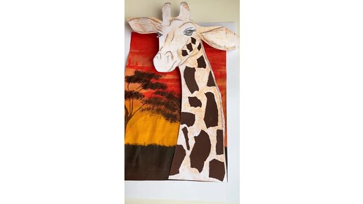Объёмная аппликация постер в детскую комнату с шаблоном ЖИРАФ мастерим своими руками вместе с ребенком