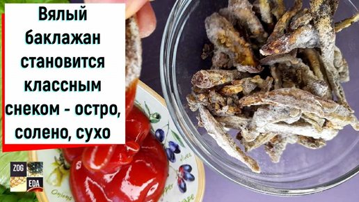 Думала выбросить, а мужики отняли и съели. Завалялся баклажан, я превратила его в "снек", похожий на вяленую рыбу, сухой, острый, соленый.