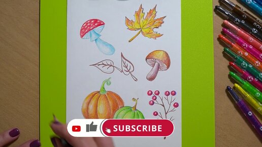 Как нарисовать осенний лист, гриб, ягоды, тыкву \ Детские рисунки