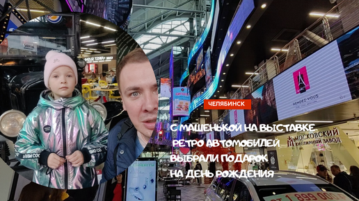 С Машенькой на выставке Ретро автомобилей. Выбрали подарок на День Рождения.