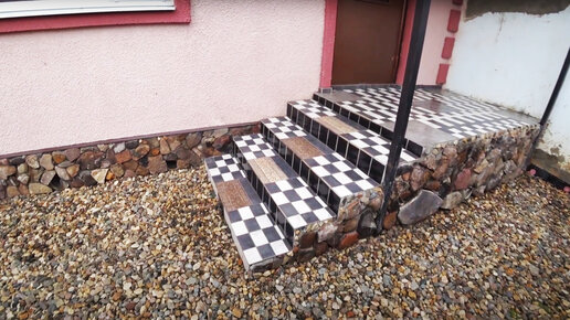 Серьёзно что ли. Облицовка крыльца на улице остатками плитки . Слепил из того что было .