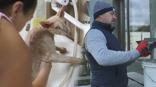 Утепление дома. Купаю кота