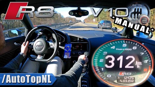 AUDI R8 V10 *MANUAL* 312km/h on AUTOBAHN [NO SPEED LIMIT] by AutoTopNL