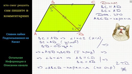 Теорема Если в четырехугольнике противолежащие стороны равны и параллельны, то этот четырехугольник – параллелограмм.