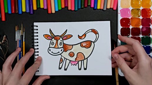 УЧИМСЯ РИСОВАТЬ КОРОВУ С ПОМОЩЬЮ ФЛОМАСТЕРА 🐮