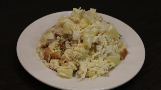 Очень вкусный салат с ананасами и курицей! Хрустящий и яркий вкус