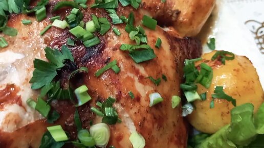 Курица с картошкой! Очень вкусный маринованный, сама в шоке от результата ! Готовим часто.