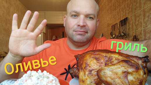 МУКБАНГ КУРА гриль и салат Оливье/ОБЖОР обеденный