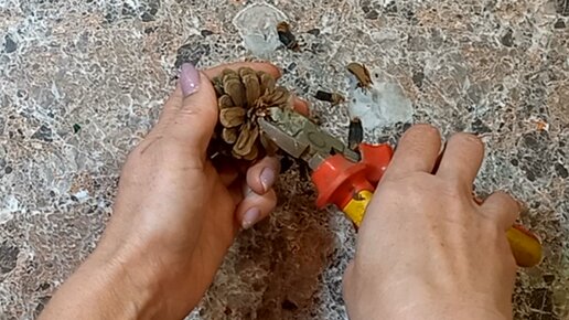 Сначала собираем шишки, а затем режем их. Делаем с детьми удивительные вещи из шишек.