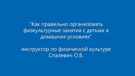 Как правильно организовать физкультурные занятия с детьми дома (инструктор по ФК Спалевич О. В.)