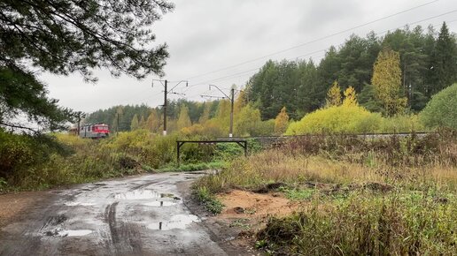 Атмосферное осеннее видео с грузовым поездом. Перегон Стрижи - Лянгасово, Горьковская железная дорога