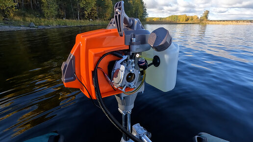Двигатель для триммера как лодочный мотор.